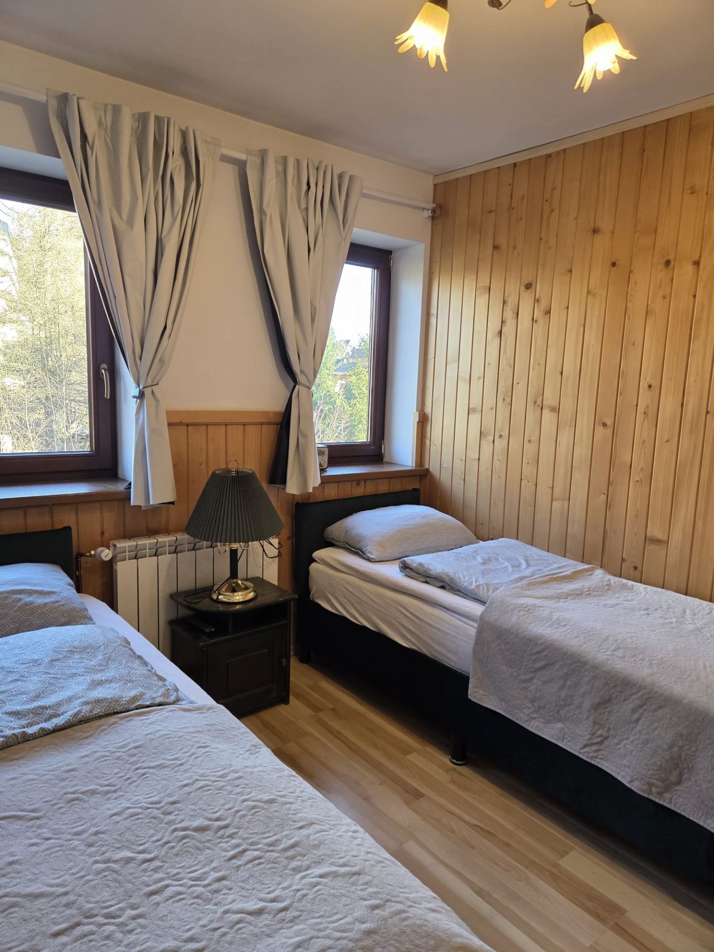 Pokoje pomieszczą odpowiednio: 2 + 4 osoby; 4 osoby; 3 osoby; 2 osoby